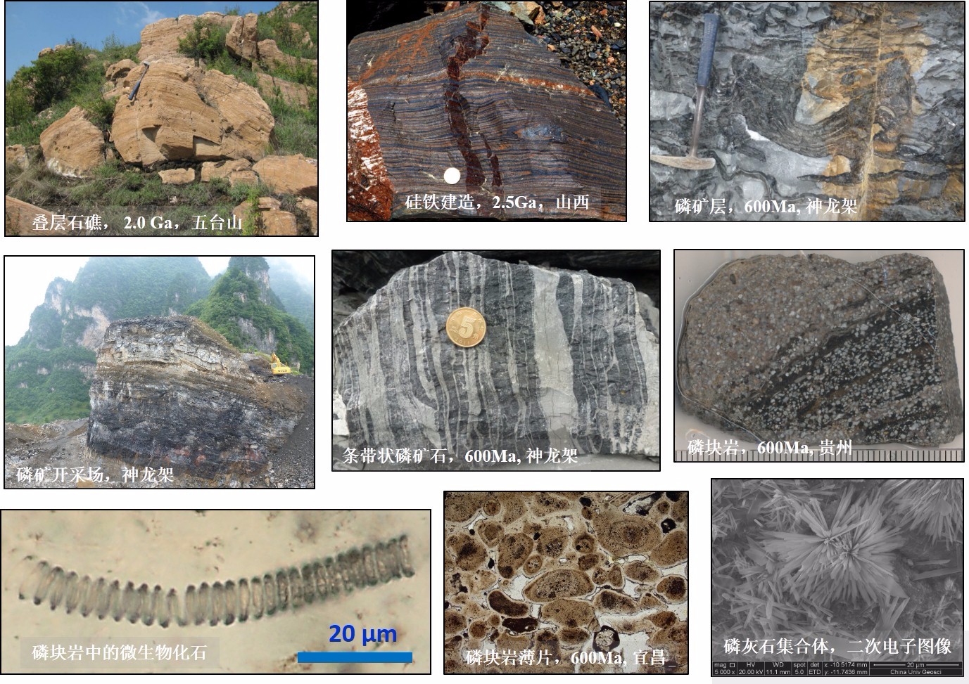 通过解读地球早期环境变化及生命演化的岩石、矿物、化学及化石记录,探讨前寒武纪转折期(古元古代晚期和新元古代末期)大气-海洋氧化进程与生物地球化学循环以及早期动物演化等重大地质事件之间的联系。