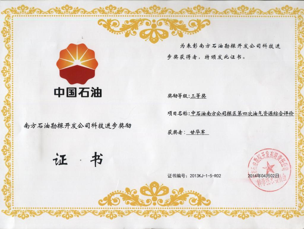 Title of Achievement:中石油南方公司探区第四次油气资源综合评价