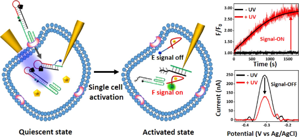 18. Fujian Huang, Meihua Lin, Ruilin Duan, Xiaoding Lou, Fan Xia*, Itamar Willner*, Photoactivated Specific mRNA Detection in Single Living Cells by Coupling “Signal-on” Fluorescence and “Signal-off” Electrochemical Signals, Nano Letters, 2018, 18, 5116–5123.