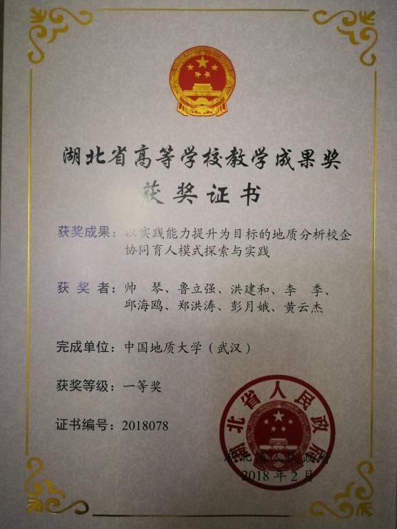 成果名称:以实践能力提升为目标的地质分析校企协同育人模式探索与实践