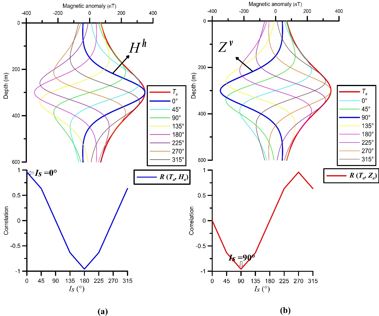 图1 不同总有效磁化倾角下井中磁分量数据的相关性