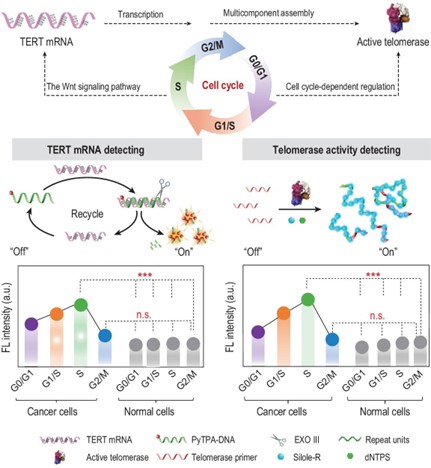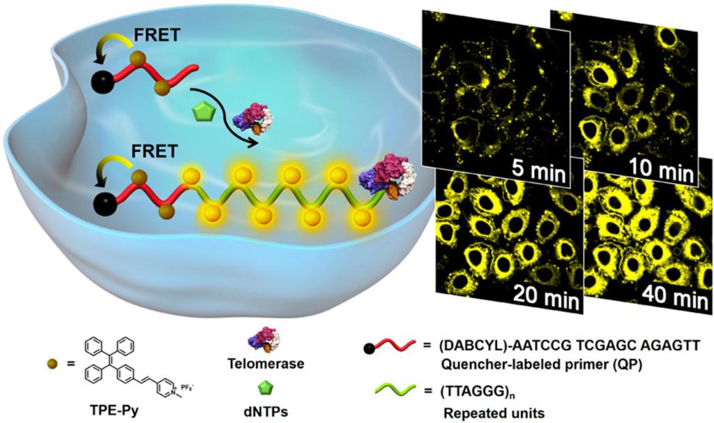 Jia, Yongmei(#), Gao, Pengcheng(#), Zhuang, Yuan(#), Miao, Mao, Lou, Xiaoding(*) and Xia, Fan, Facile probe design: fluorescent amphiphilic nucleic acid probes without quencher providing telomerase activity Imaging inside living cells. Analytical Chemistry, 2016, 88 (12), 6621-6626.