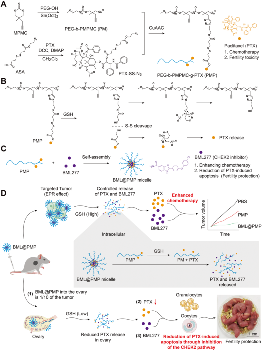 Wu, Meng(#), Xue, Liru(#), Guo, Yican, Dong, Xiaoqi, Chen, Zhaojun, Wei, Simin, Yi, Xiaoqing, Li, Yinuo, Zhang, Jinjin, Zhou, Su, Wu, Mingfu, Lou, Xiaoding(*), Dai, Jun(*), Xia, Fan(*), Wang, Shixuan(*).Microenvironmentally responsive chemotherapeutic prodrugs and CHEK2 inhibitors self-assembled micelles: protecting fertility and enhancing chemotherapy. Advanced Materials. 2023, 2210017.