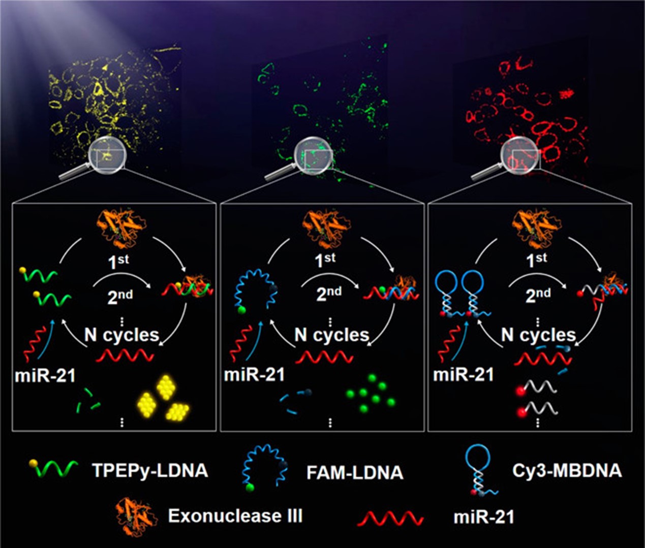 Min, Xuehong, Zhang, Mengshi, Huang, Fujian, Lou, Xiaoding(*), Xia, Xia, Fan. Live Cell MicroRNA Imaging Using Exonuclease III Aided Recycling Amplification Based on Aggregation-Induced Emission Luminogens. ACS Applied Materials & Interfaces, 2016, 8 (42), 29194-29194.