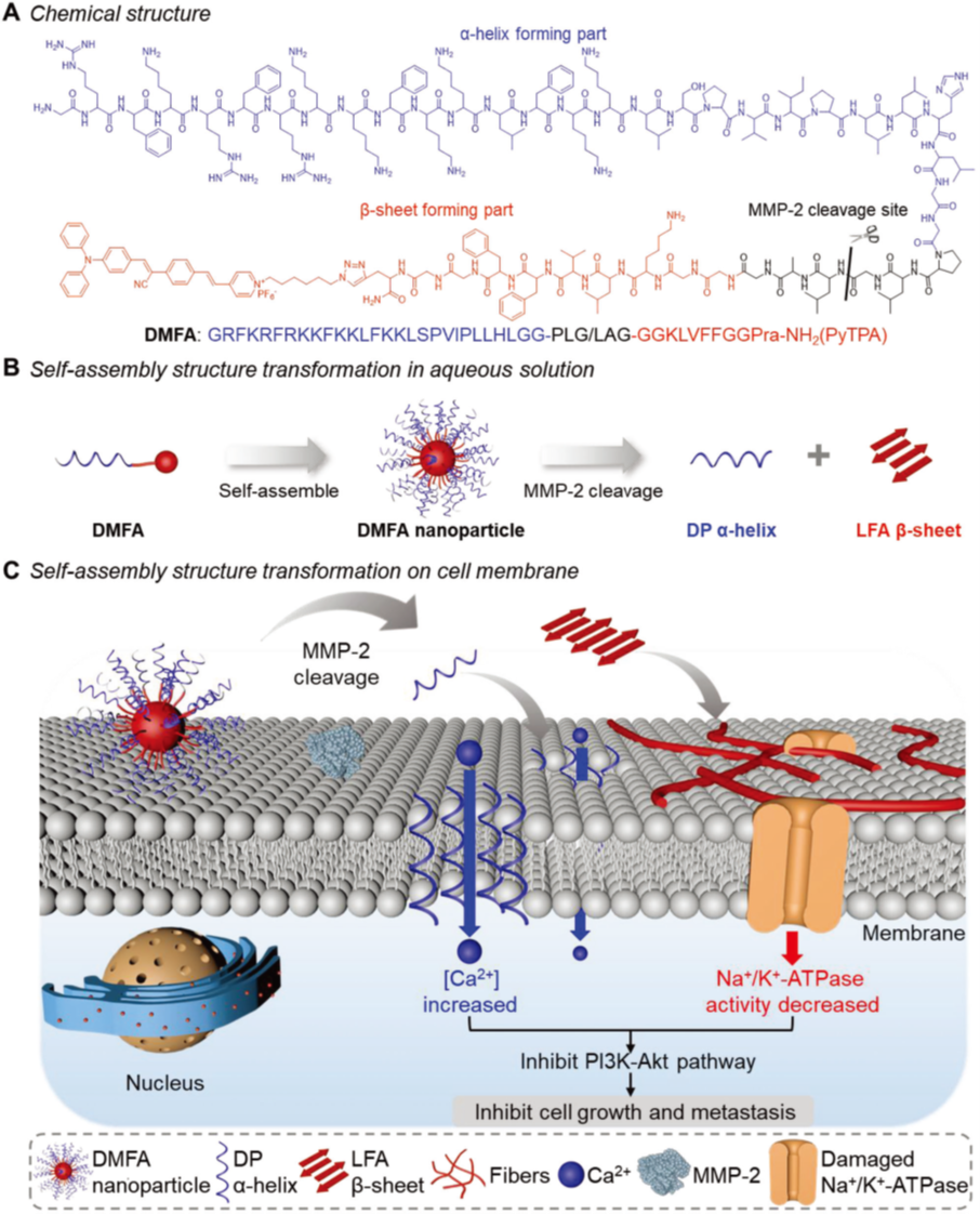 Zhang, Wei(#), Hu, Jing-Jing(#), Liu, Rui, Dai, Jun, Yuan, Lizhen, Liu, Yiheng, Chen, Bochao, Gong, Mingxing, Xia, Fan and Lou, Xiaoding(*). A peptide-conjugated probe with cleavage-induced morphological change for treatment on tumor cell membrane. Advanced Science, 2023, 2207228. DOI: 10.1002/advs.202207228.