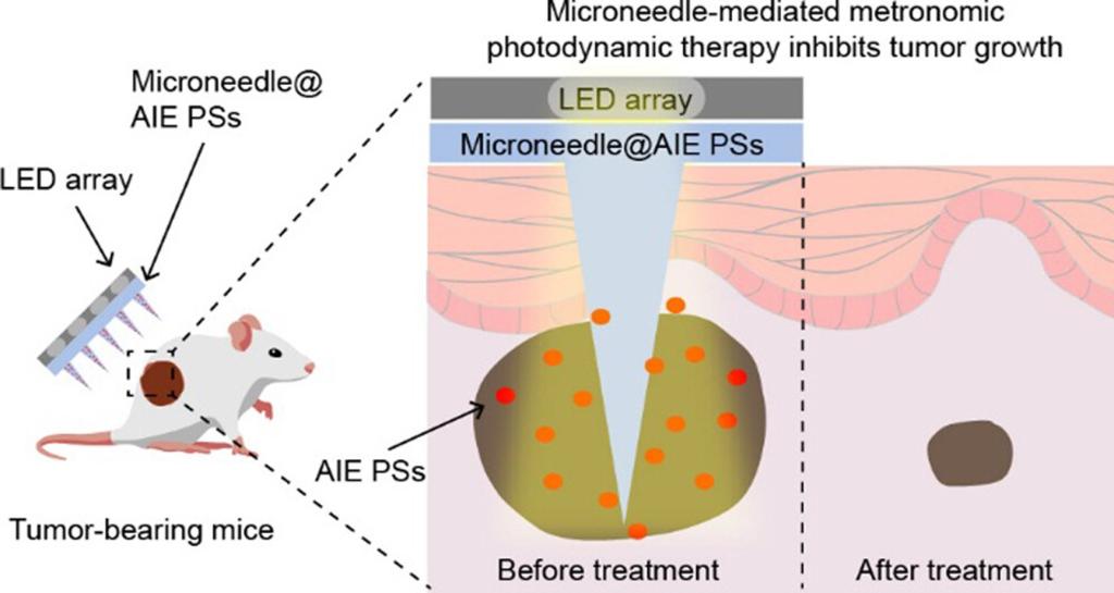 Dai, Jun(#), Wei, Simin(#), Xu, Jiarong(#), Xue, Huiying, Chen, Zhaojun, Wu, Meng, Chen, Wei(*), Lou, Xiaoding, Xia, Fan(*), and Wang, Shixuan(*). Microneedle Device Delivering Aggregation-Induced Emission Photosensitizers for Enhanced Metronomic Photodynamic Therapy of Cancer. ACS Applied Materials & Interfaces, 2023, 15, 13, 16526–16538.