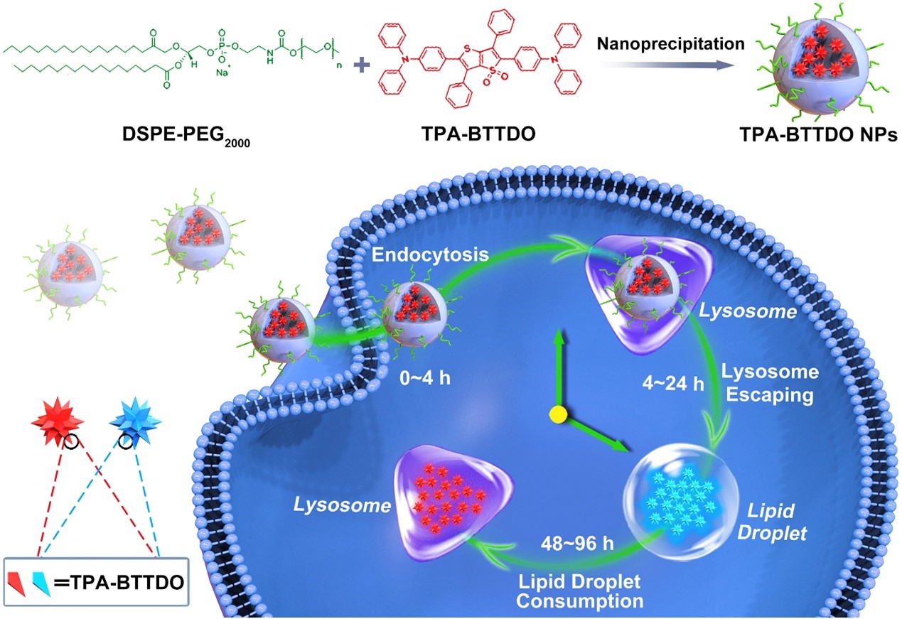 Hu, Rong(#), Chen, Bin(#), Wang, Zhiming, Qin, Anjun, Zhao, Zujin(*), Lou, Xiaoding(*) and Tang, Ben Zhong(*). Intriguing "chameleon" fluorescent bioprobes for the visualization of lipid droplet-lysosome interplay. Biomaterials, 2019, 203, 43-51.