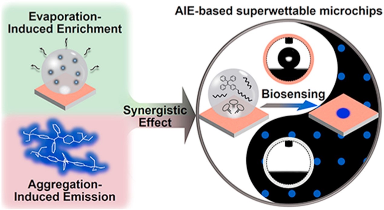 Chen, Yanxia, Min, Xuehong, Zhang, Xiqi, Zhang, Feilong, Lu, Simeng, Xu, Li-Ping(*), Lou, Xiaoding(*), Xia, Fan, Zhang, Xueji(*) and Wang, Shutao. AIE-based superwettable microchips for evaporation and fluorescence enhancement biosensing. Biosensors & Bioelectronics, 2018, 111, 124-130.