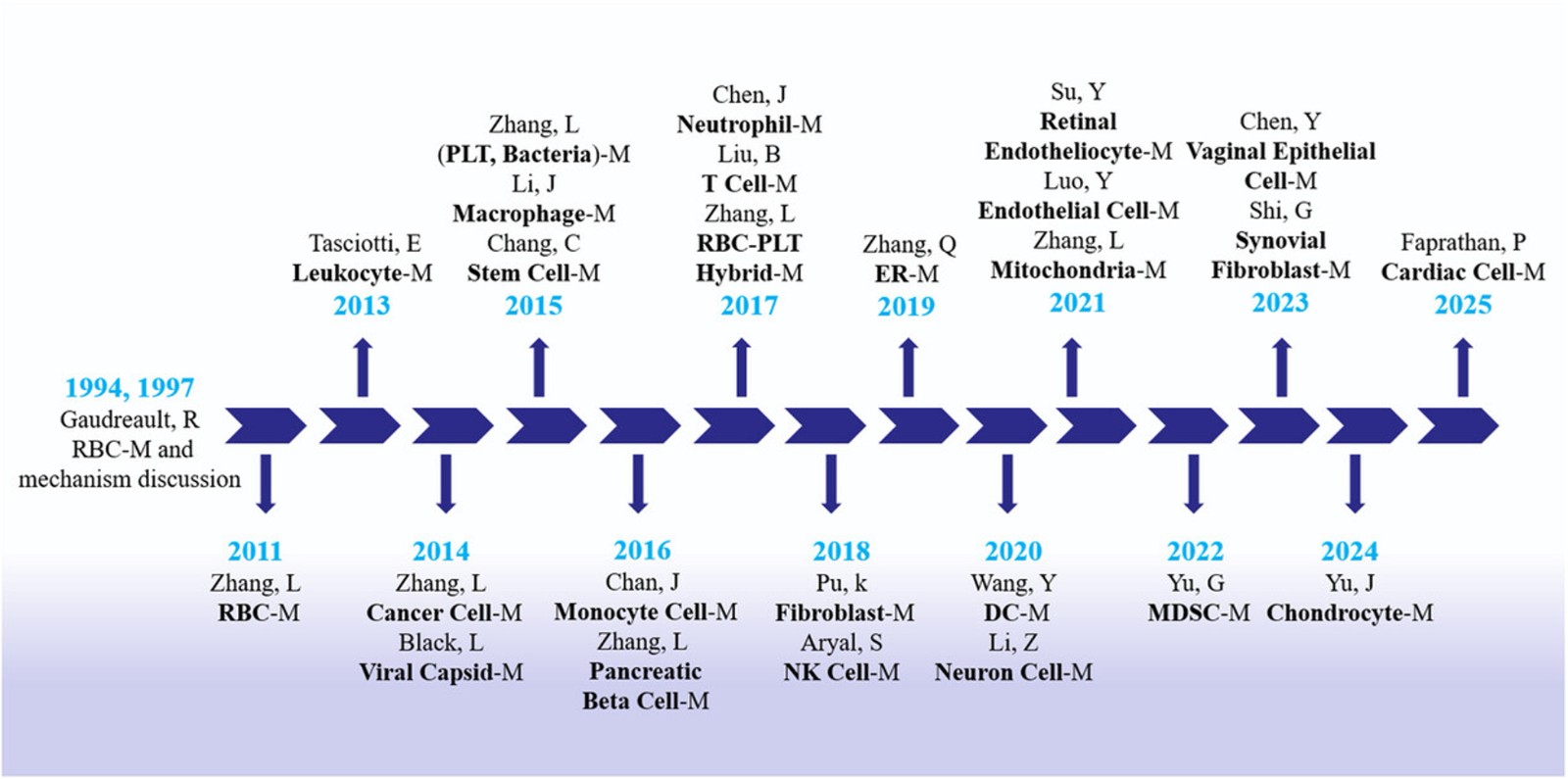 Li Ying(#), Xiong Jiaqiang(#), Yu Hui(#), Wang Jingxin, Wu Meng, Lou Xiaoding, Zhou Lei(*), Li Fei(*), Dai Jun(*), Xia Fan(*).Natural Cell-Inspired Nanoparticles: Preparation, Mechanisms, Applications, and Prospects for Clinical Translation. Advanced Materials, 2025, e05187.