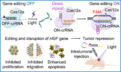Liu Hong, Dong Jiantong, Wu Renzhi, Dai Jun(*), Lou Xiaoding, Xia Fan, Itamar Willner(*), Huang Fujian(*). Light-Triggered CRISPR/Cas12a for Genomic Editing and Tumor Regression. Angewandte Chemie International Edition, 2025, 64, e202502892.