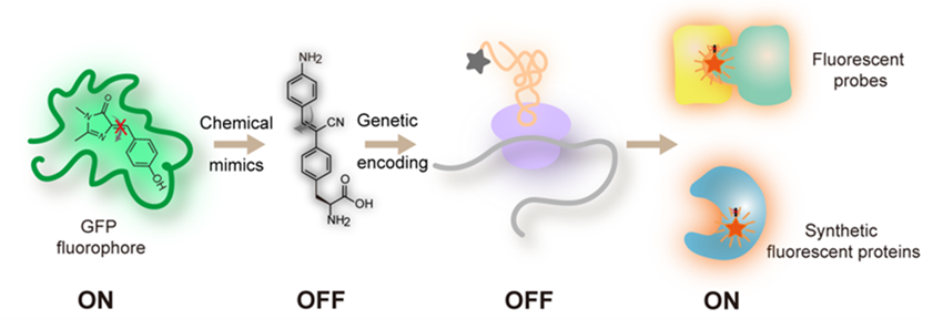 Hu Liming, Cao Wenbing, Jiang Yihaofan, Cai Wenkang, Lou Xiaoding(*), Liu Tao(*). Designing Artificial Fluorescent Proteins and Biosensors by Genetically Encoding Molecular Rotor-based Amino Acids. Nature Chemistry, 2024, 16, 1960–1971.