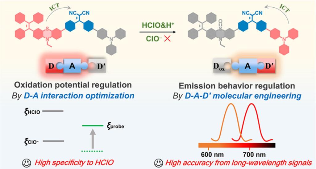 Chen Jinjin, Gong Hongjian, Yang Axiu, Gao Yu, Zhong Cheng, Chen Dugang, Lou Xiaoding, Xia Fan, Dai Jun (*).Asymmetric D–A–D′ Ratiometric Molecule for Highly Specific Hypochlorous Acid Detection. Analytical Chemistry, 2025, 97, 11, 6230–6239.