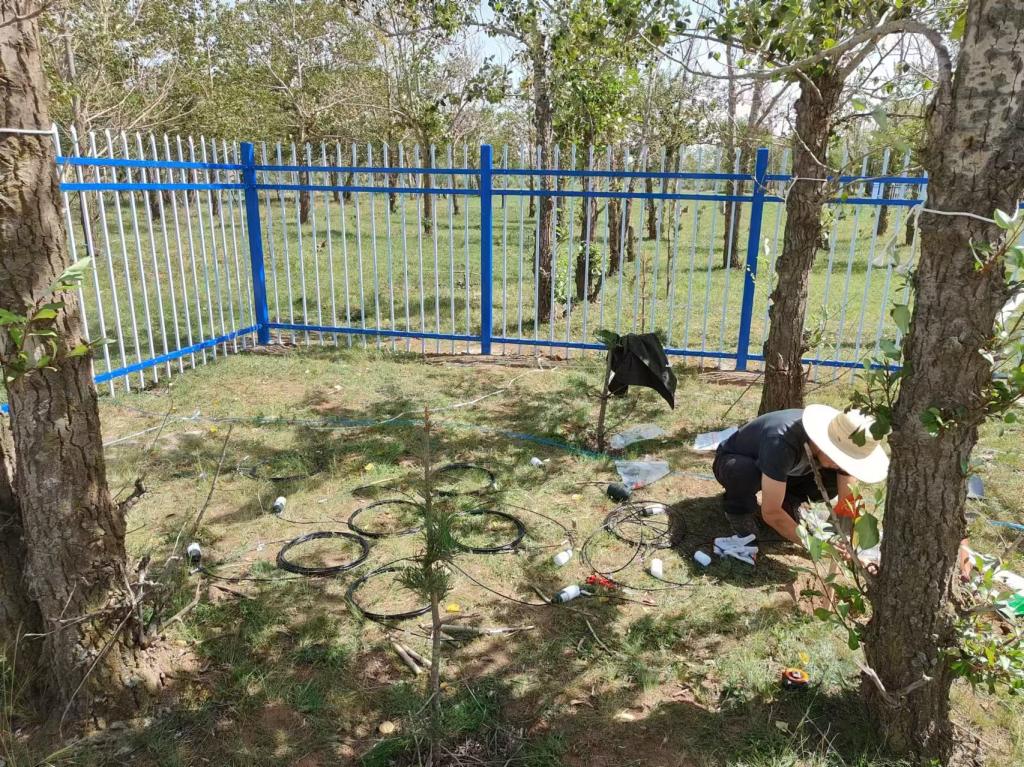 张北项目组在人工林内安装监测设备