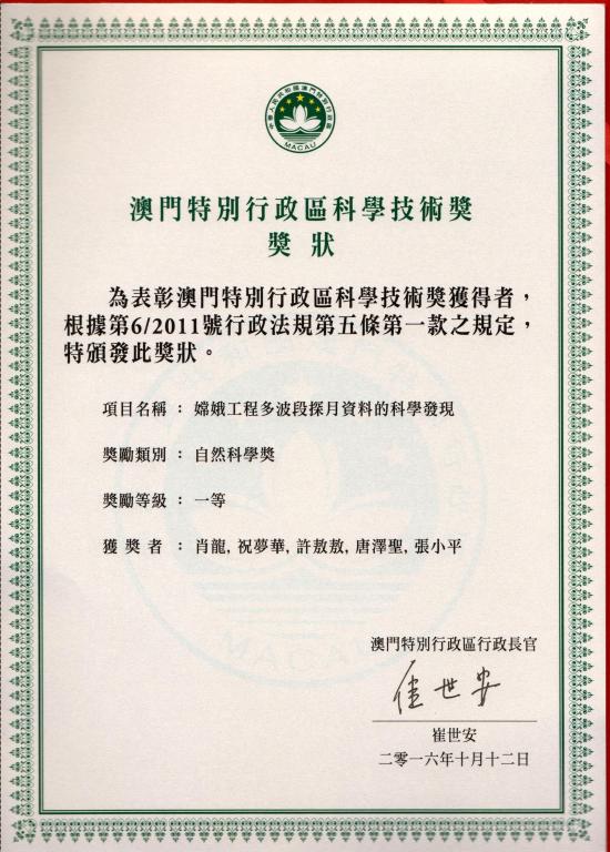 Granted by:澳门特别行政区