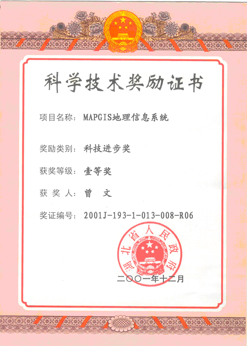获奖日期:2001-12-01