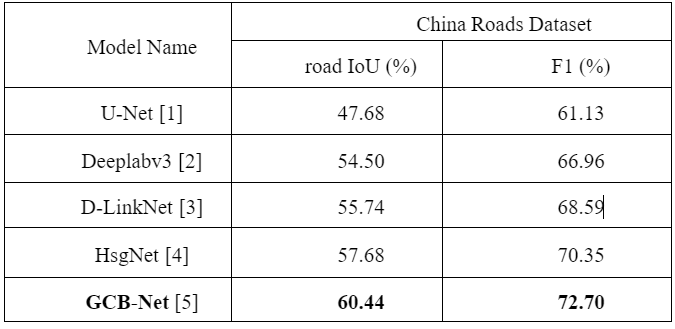 The extraction effect of typical deep learning algorithms in the field of road extraction on CHN6-CUG Road Dataset is shown in Table 1.